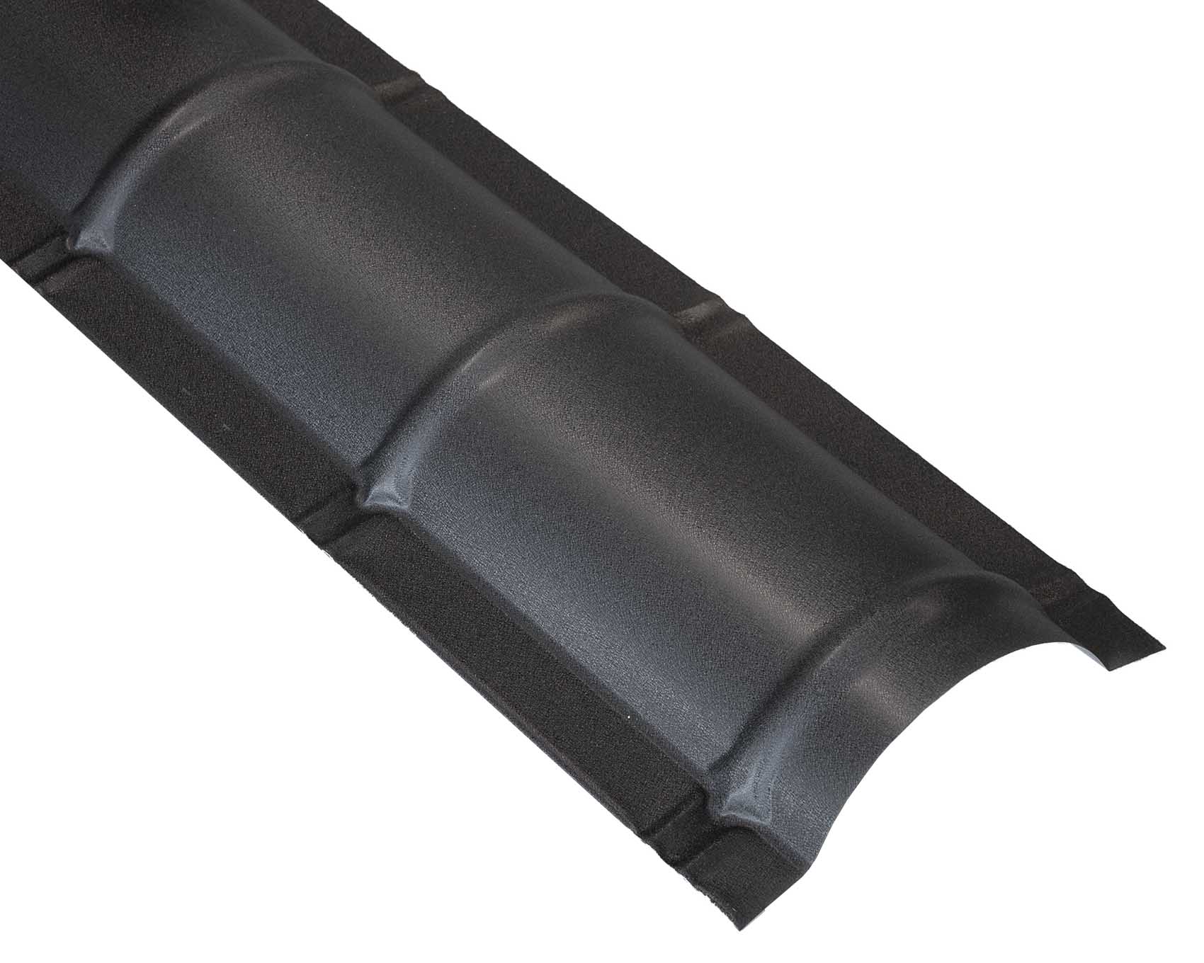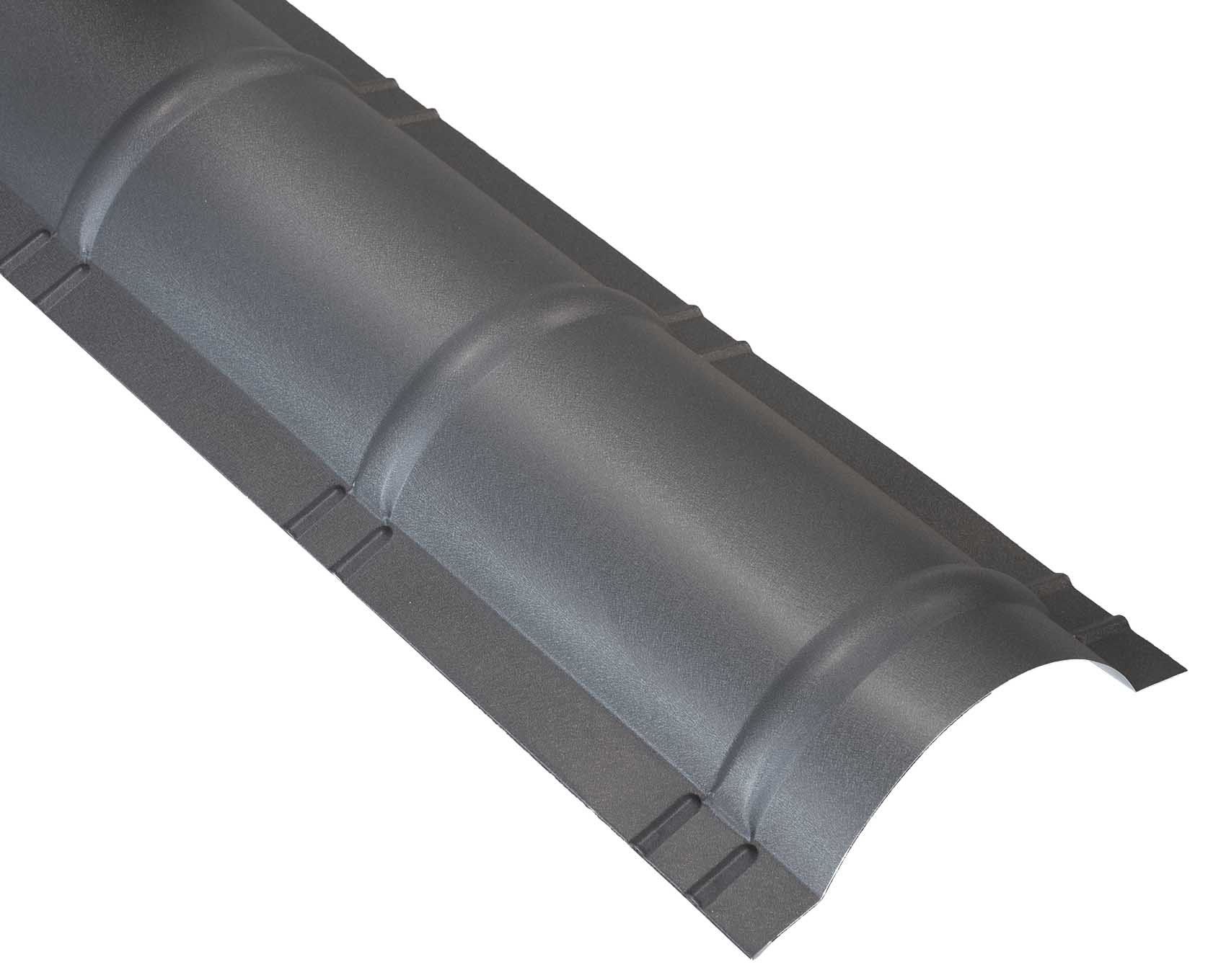 Ronde nokstuk van 33 cm breed, vervaardigd uit 0,50 mm dik gegalvaniseerd staal met poedercoating. Verkrijgbaar in de kleuren antraciet en zwart. Geschikt voor niet geïsoleerde dakpanelen en zorgt voor een waterdichte en esthetische afwerking van de daknok. Bruto lengte 2,32 meter, nettolengte 2,20 meter, hoogte circa 9 cm.
